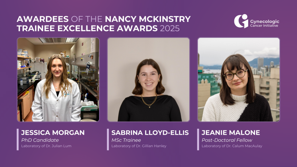 Nancy McKinstry Endowment Fund for Ovarian Cancer Research, held at BC Cancer Foundation, is cultivating the next generation of ovarian cancer experts. Celebrating cutting-edge research, the Nancy McKinstry Trainee Excellence Award recently recognized three rising scholars who are poised to accelerate new treatments and improve care for British Columbians facing ovarian cancer.